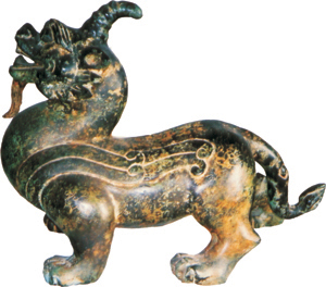 森林看到獨(dú)角獸出沒,此獸與流傳下來的中國古代瑞獸圖形酷似:身形似虎,通身赤紅,頭頂正中有弧形獨(dú)角,遇有人近前則迅疾隱沒不見 .