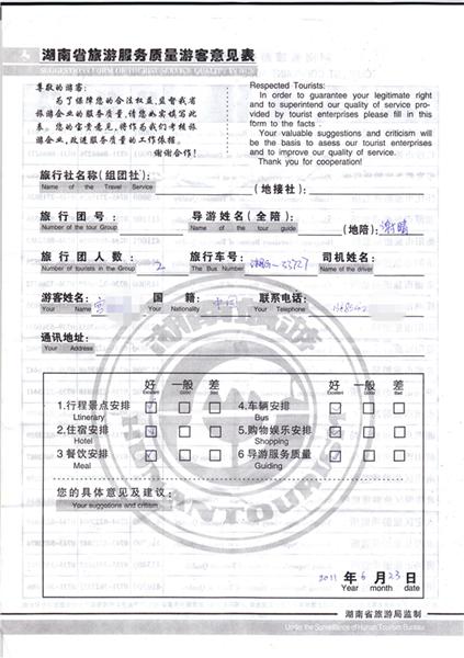 2011年6月23日宮小姐一行2人旅游質(zhì)量反饋